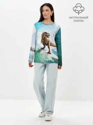 Лонгслив женский. Хлопок / Тираннозавр REX | Серфинг