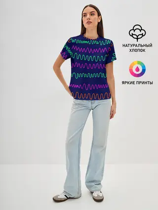 Мужская футболка оверсайз / Линии разными ручками на синем
