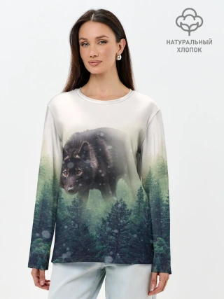 Лонгслив женский. Хлопок / Волк