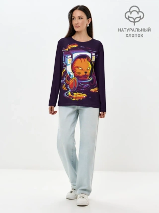 Лонгслив женский. Хлопок / Техно Кот