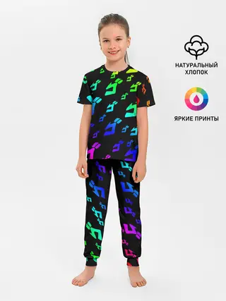 Детская пижама с брюками / Радужный Паттерн Лого ДжоДжо