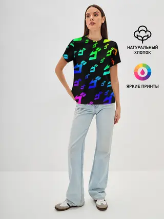 Женская базовая футболка / Радужный Паттерн Лого ДжоДжо
