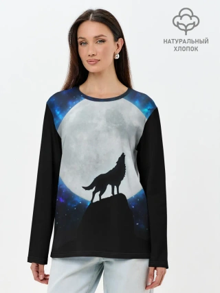 Лонгслив женский. Хлопок / Волк воющий на луну