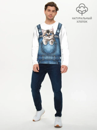 Мужской лонгслив базовый / КОТЕНОК В КАРМАНЕ