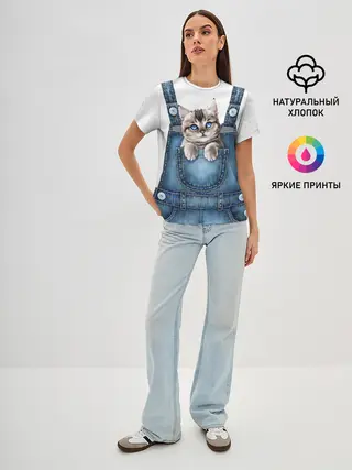 Женская футболка оверсайз / КОТЕНОК В КАРМАНЕ