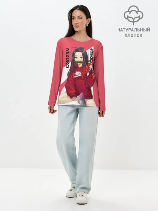 Лонгслив женский. Хлопок / Незуко коралловый