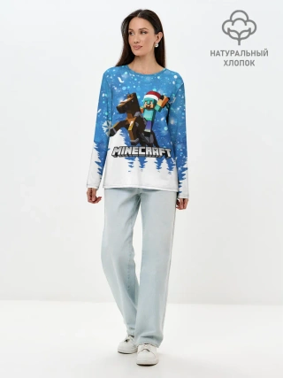 Лонгслив женский. Хлопок / Новогодний Манкрафт на коне