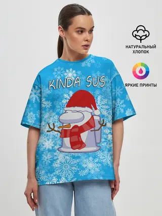 Женская футболка оверсайз / AMONG US СНЕГОВИК