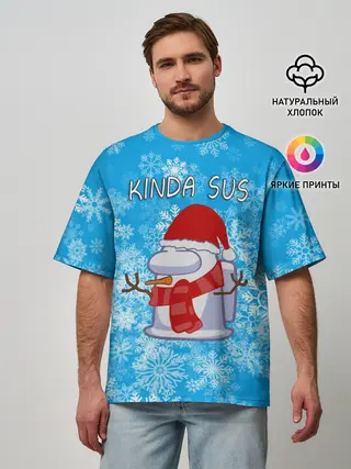 Мужская футболка оверсайз / AMONG US СНЕГОВИК