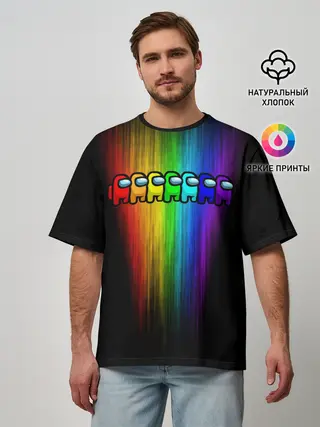 Мужская футболка оверсайз / AMONG US - РАДУГА