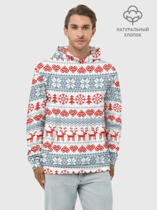 Худи мужской база хлопок / Новогодний пиксельный узор