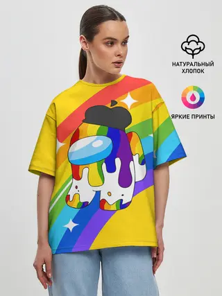 Женская футболка оверсайз / AMONG US - Радужный