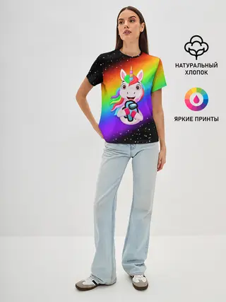 Женская базовая футболка / AMONG US - С ЕДИНОРОГОМ