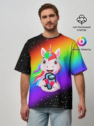 Мужская футболка оверсайз / AMONG US - С ЕДИНОРОГОМ