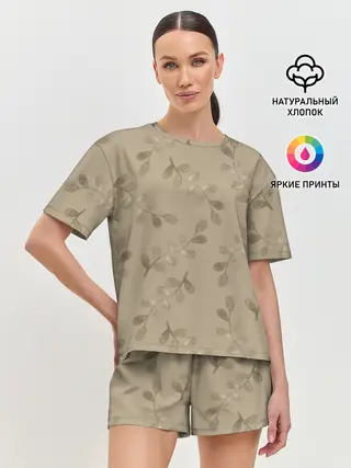 Мужские трусы с футболкой / Листья на бежевом фоне