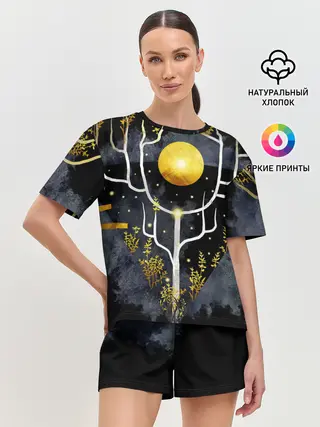 Женская пижама с шортами / графит и золото: дерево жизни
