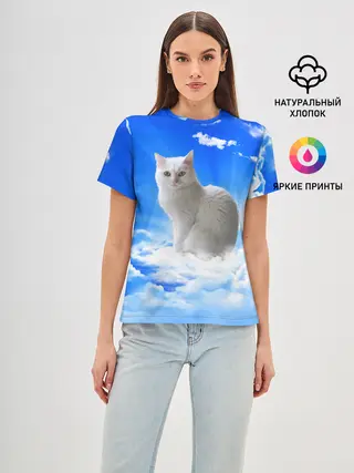 Женская футболка оверсайз / Кот в облаках