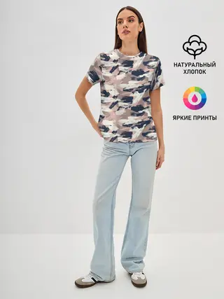 Женская базовая футболка / Кремовый камуфляж