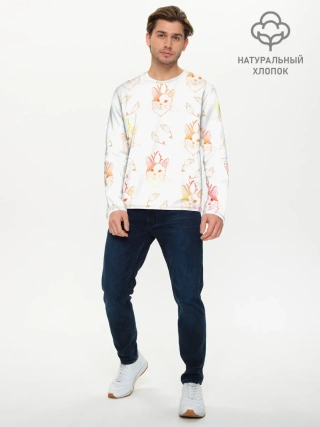 Мужской лонгслив базовый / Рогатая кошка с мышами