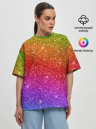 Женская футболка оверсайз / Блестки радуги