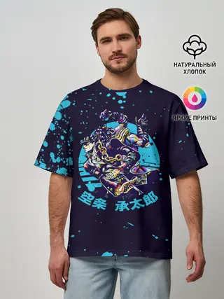 Мужская футболка оверсайз / Дзётаро синие брызги
