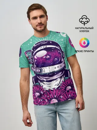 Мужская базовая футболка / Цветочный Астронавт