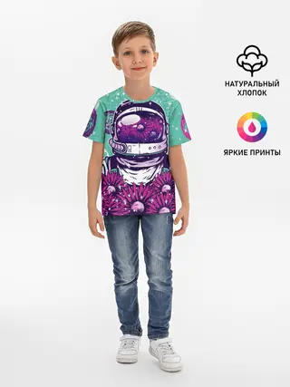 Детская базовая футболка / Цветочный Астронавт