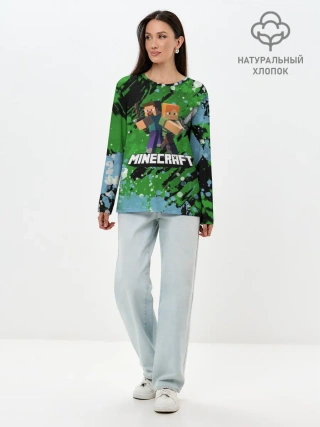 Лонгслив женский. Хлопок / Minecraft / Майнкрафт