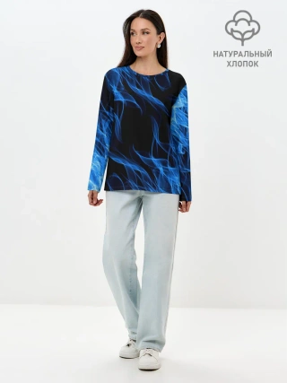Лонгслив женский. Хлопок / BLUE FIRE FLAME