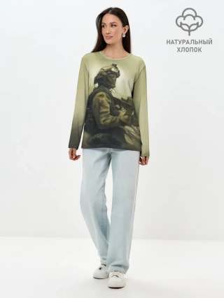 Лонгслив женский. Хлопок / Военный