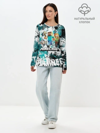 Лонгслив женский. Хлопок / Minecraft / Майнкрафт
