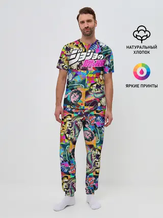 Мужская пижама с брюками / Джоджо паттерн комикс