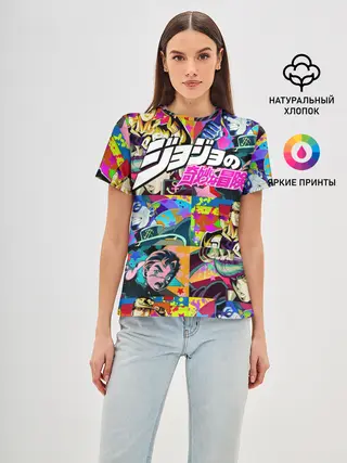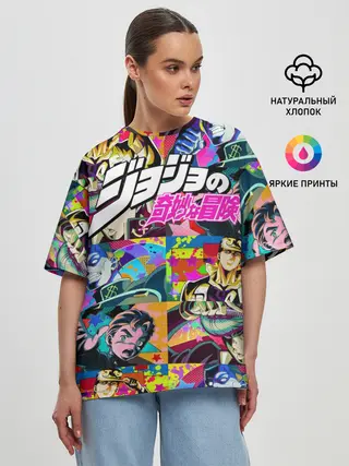 Женская футболка оверсайз / Джоджо паттерн комикс