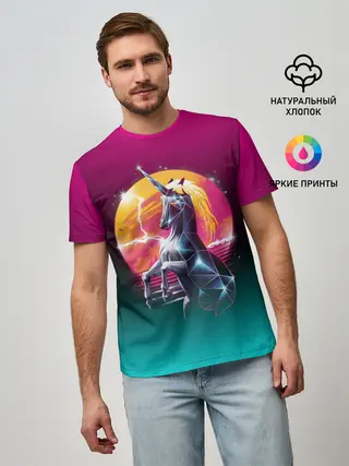Мужская базовая футболка / РЕТРО ЕДИНОРОГ НЕОН