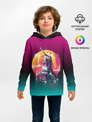 Детское худи / РЕТРО ЕДИНОРОГ НЕОН