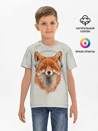 Детская базовая футболка / Лиса в наушниках