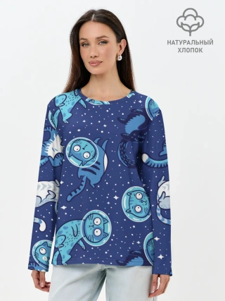 Лонгслив женский. Хлопок / Кот Космонавт
