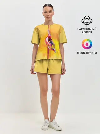 Женская пижама с шортами / Гимнастика на полотнах