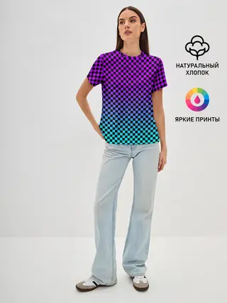 Женская базовая футболка / НЕОНОВАЯ ШАХМАТКА