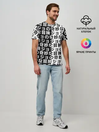 Мужская базовая футболка / Иероглифы джоджо чернобелые