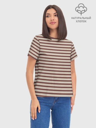 Женская базовая футболка хлопок / Полоска Ретро brown