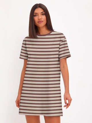 Женское платье хлопок / Полоска Ретро brown