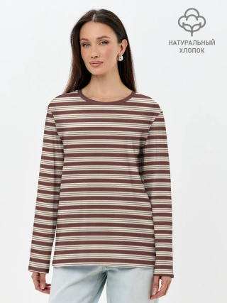 Лонгслив женский. Хлопок / Полоска Ретро brown