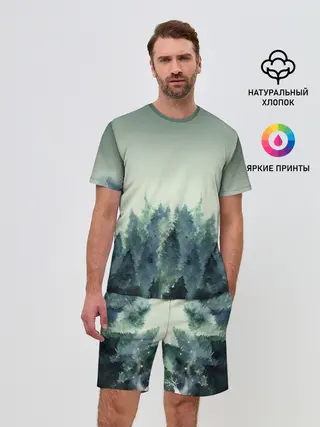 Детская пижама с брюками / акварельный лес градиент