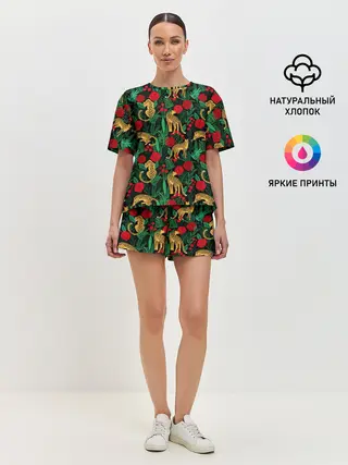 Шикарная пижама/домашний/летний костюм! Принт очень реалистичный! Когда увидела в пакете, показалось, что нам пристали что-то меховое. Дочка в восторге, у неё сейчас любовь к тиграм-альбиносам, но такой расцветки не нашлось)), я заказала классику) На рост 113 оставили размер 110.