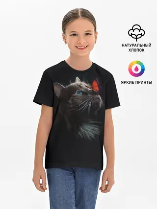 Детская пижама с брюками / Котик и бабочка
