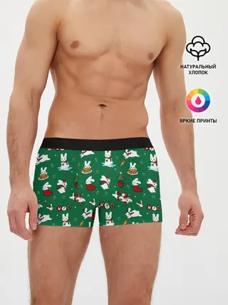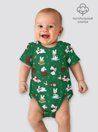 Детская пижама с брюками / Новогодний паттерн с зайчиками