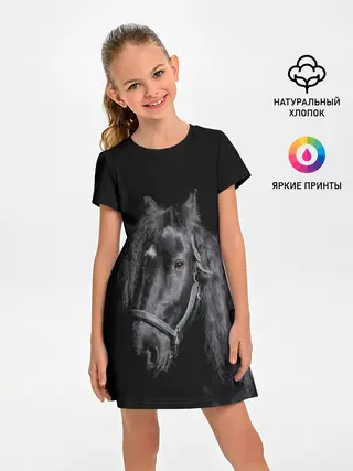 Детская пижама с брюками / Лошадь на черном фоне