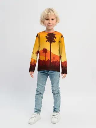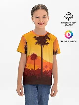 Детская пижама с брюками / Лето, Пальмы, вечер