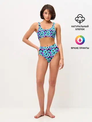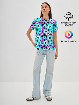 Детская пижама с брюками / Яркие бирюзовые цветы